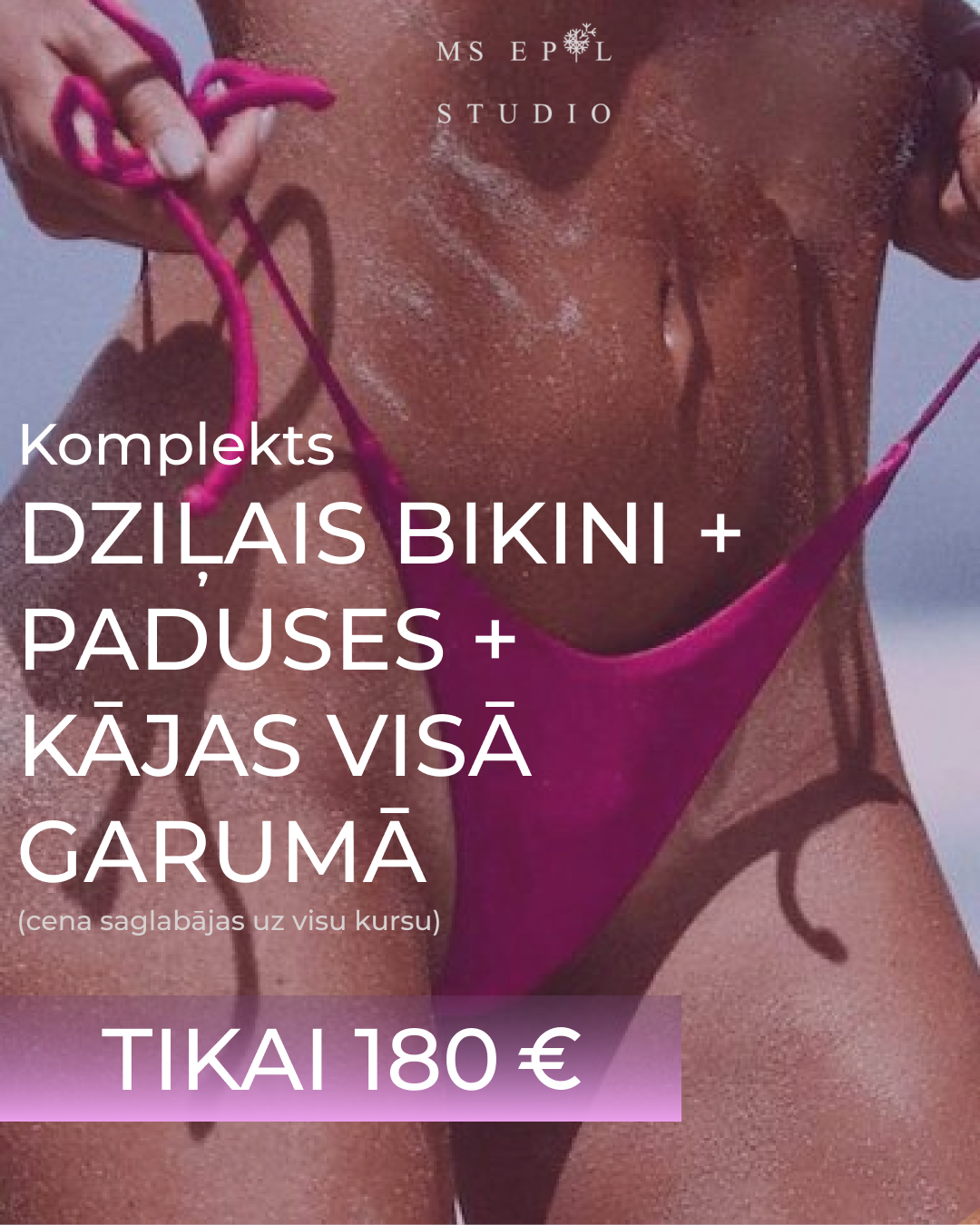 Lāzerepilācijas akcijas Mēs piedāvājam īpašas cenas uz dažādu zonu komplektiem un šī cena tiek saglabāta uz visu kursu!